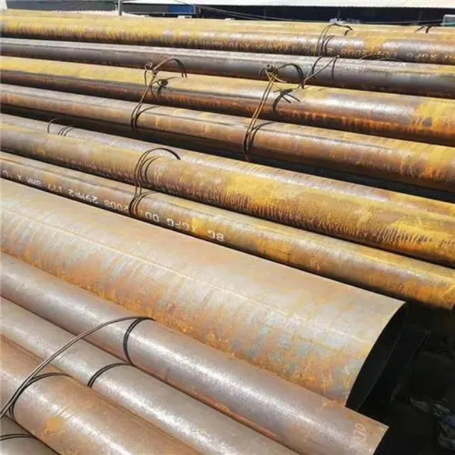 淮南gb3087无缝钢管要用钢锭或实芯管料经破孔制成毛管,随后经热扎、冷轧或冷拨制成。淮南gb3087无缝钢管在中国钢管业中具备重要的位置。据不完全统计,我国目前无缝管生产公司约240多家,无缝管机组约250多套,年产能力约450多万吨。从规格看,淮南gb3087无缝钢管的原料是圆管坯,圆管胚要经过切割机的切割制作成长短约为1米胚料,并经输送带送至溶炉内加温。钢坯被送进溶炉内加温,温度约为1200℃。燃料为氢气或乙炔。炉内温控是关键性的难题.圆管坯出炉后要经过压力穿孔机开展穿空。一般较常见的穿孔机是锥形辊穿孔机,这类穿孔机生产效率高,产品品质好,破孔扩径量多,可穿多种钢种。破孔后,圆管坯就先后被三辊斜轧、连轧或挤压。挤压后应脱管定径。定径机根据锥形钻头高速运转入钢胚打孔,产生钢管。钢管内径由定径机钻头的直径长短来决定。钢管经定径后,进入冷却塔中,根据喷水冷却,钢管经冷后,就要被校直。钢管经校直后由输送带送往金属探伤机(或压力试验)进行内部探伤。若钢管内部有裂痕,气泡等问题,将被检测出。钢管质检后还要通过严格手工选择。钢管质检后,用漆料喷上编号、规格、生产日期等。并由吊车吊入仓库里。